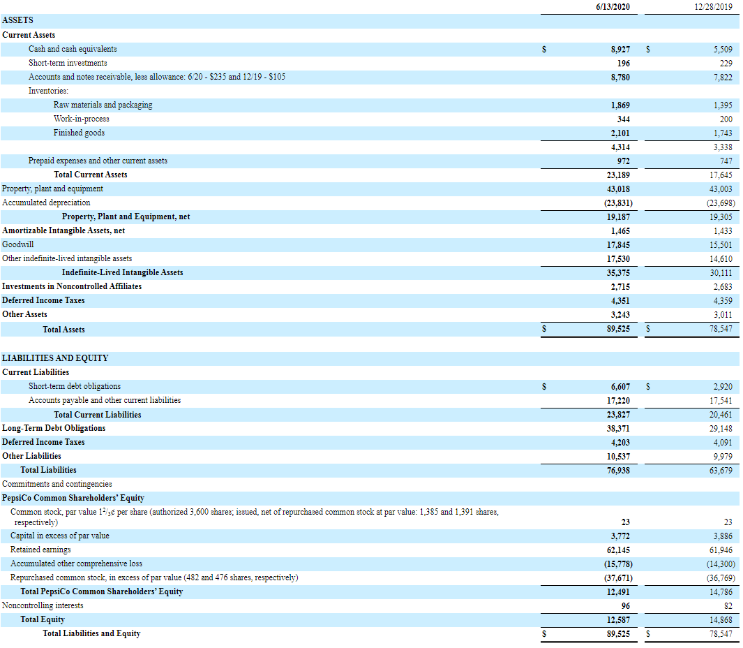 펩시의 자산은 전년대비 13.97% 상승하였는데, 동기간 유동자산이 31% 상승하였습니다.