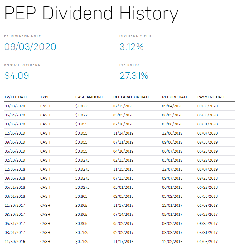 *펩시 배당금 히스토리