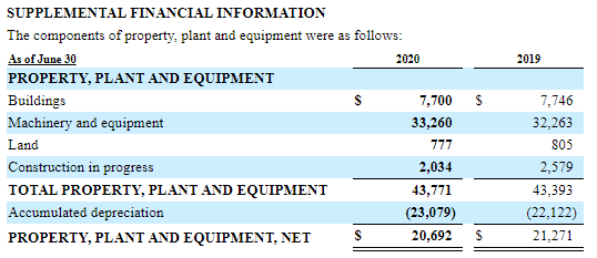 생산과 관련된 Machinery and equipment의 자산이 332억불 가량 있었고, 건설중인 자산또한 20억불 가량 보유하고 있었네요. 보유 땅의 자산이 다소 줄었는데, 보유 땅을 조금 판매한거 같습니다. (혹은 재감정에 의한 가치하락)