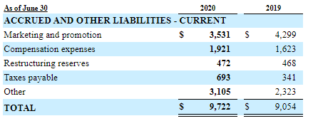 위의 표를 보시면, 마케팅관련 단기 채무는 다소 줄었지만, 임금과 세금관련 비용이 증가하며 전년대비 다소 증가한 수치를 기록하였네요. 큰 변화수치가 아니니 패스하겠습니다.