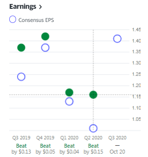 지난 분기의 EPS는 1.01의 예상을 훨씬 뛰어넘은 1.16을 기록해주었는데, 시장은 3분기의 EPS를 1.41로 예측하는 등 P&G의 실적에 긍정적으로 예상하고 있는것 같습니다.
