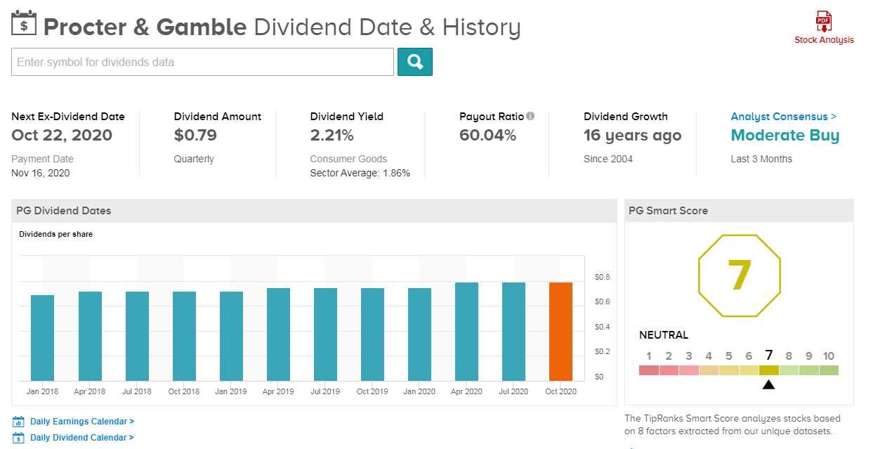 P&G의 배당율은 2.21%로 다음 배당락일은 10/22일 이네요. 다음 11/16일 지급되는 배당금을 받으려면 미리 구매해두는것도 좋겠네요? ㅎㅎ