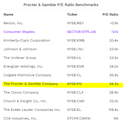 28.2배를 기록하고 있는데요, 이는 존슨앤존스와 Kimberly Clark의 23배, 20.4배 배도 훨씬 높은 수치입니다.