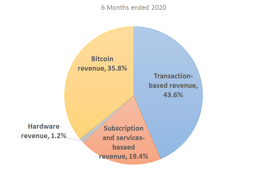 - 고객들은 스퀘어가 제공하는 'Cash App'에서 비트코인을 매매할 수 있으며, 제품들을 비트코인으로 결제할수도 있습니다. 고객들이 비트코인을 매매할때 스퀘어는 일정한 Fee를 받는데, 이 비지니스에 의한 수익입니다. 20년도 상반기 기준 전체 매출의 35.8%를 차지하고있습니다.