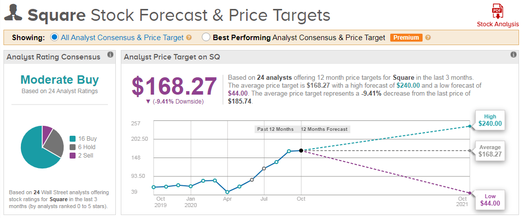Low $44, High $240를 기록하는 등 평균 주가는 $168.27을 부여받았는데, 이는 현재 주가인 $185.7에 비해 9%가량 떨어질 수 있겠네요. (전문가 의견을 맹신하지마세요)