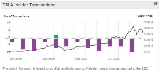 테슬라의 Insider 들은 꾸준히 주식을 팔고 있으며, 최근 3개월간 약 580만불을 팔았습니다.